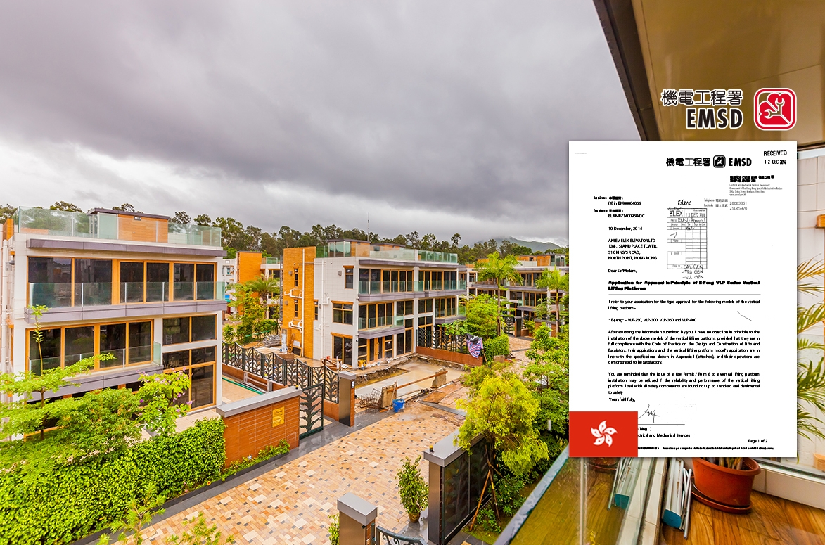 樱花家庭电梯于2014年取得香港EMSD认证后,随即销售电梯至香港各地。载货电梯于2021年再度取得香港EMSD认证,香港知名企业的生产物流工厂随即选用我司载货电梯,此外更取得新加坡TÜV认证、美国UL认证及欧盟CE认证等多国认证。
